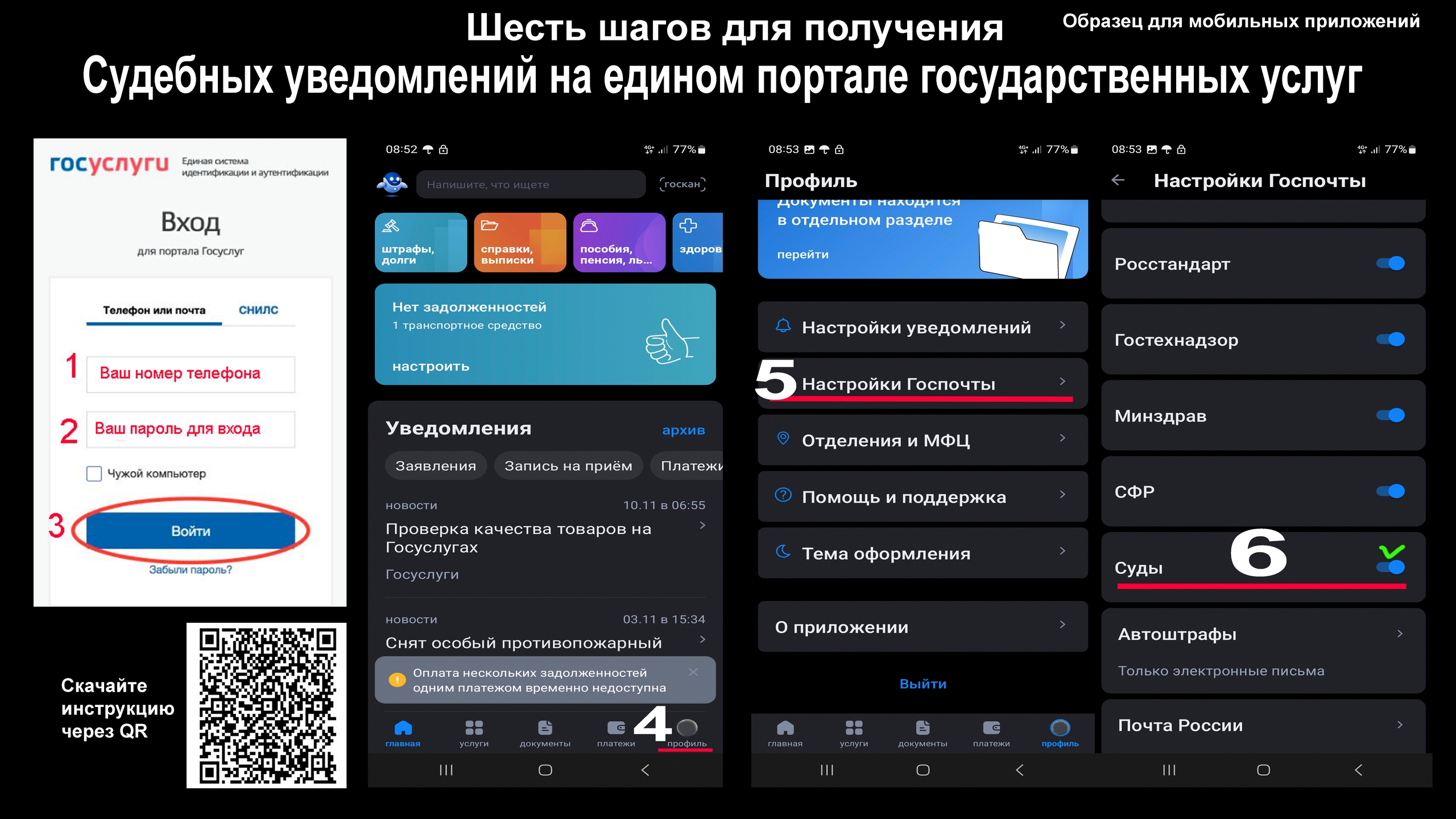 олучайте судебные уведомления на Госуслугах